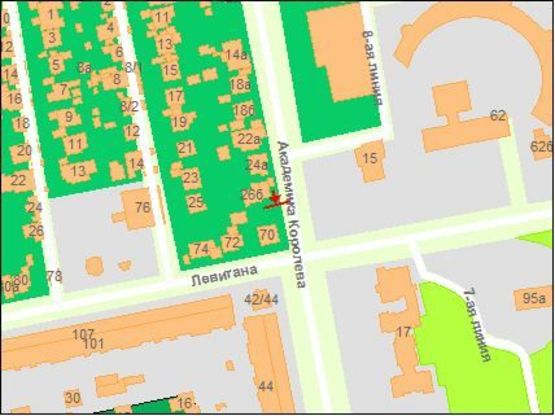 Схема рекламної площини за адресою Королева ак  ул / Левитана ул, из центра