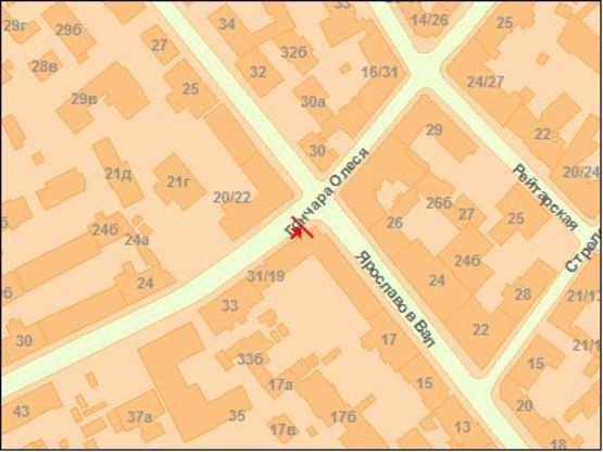 Схема рекламної площини за адресою Гончара ул., 31 / Ярославов Вал ул.