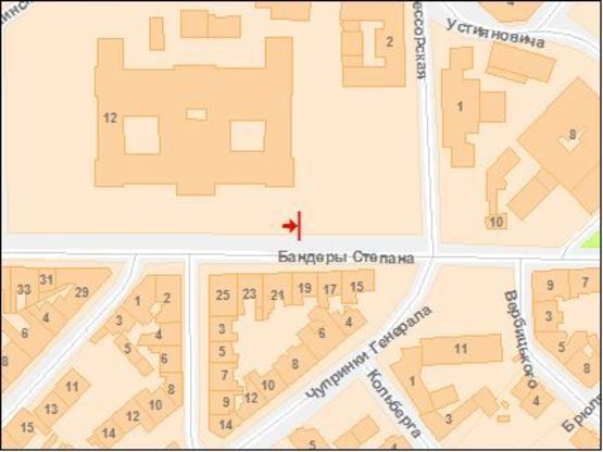 Схема рекламної площини за адресою Бандеры С. ул., в зоне перекрестка с Профессорской ул.
